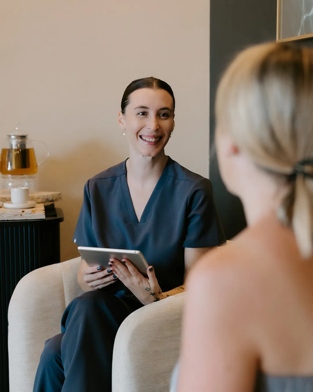 Just come with a clean face if possible, no makeup is ideal so we can get the most accurate assessment. If you can't, don't worry, we can work with that too. We'll ask you some questions about your current routine and skin history when you arrive.